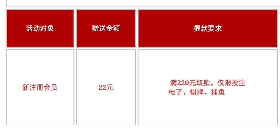 活动详情:新人注册绑卡送22彩金,注意投注规则