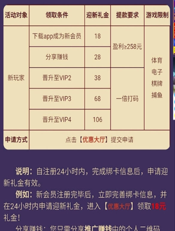 活动详情:app注册送18元彩金/满258元提款