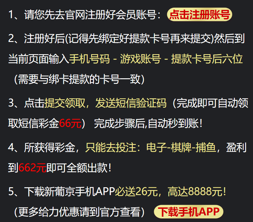 新用户注册绑卡,完善信息,返回输入手机号账号申请特邀彩金66,还有新用户注册36!