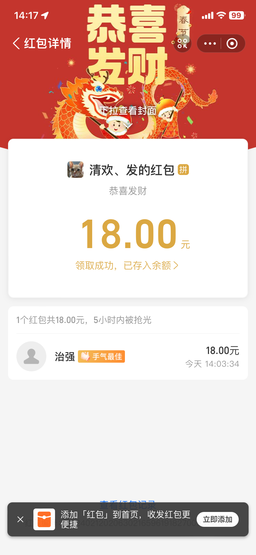 中奖了